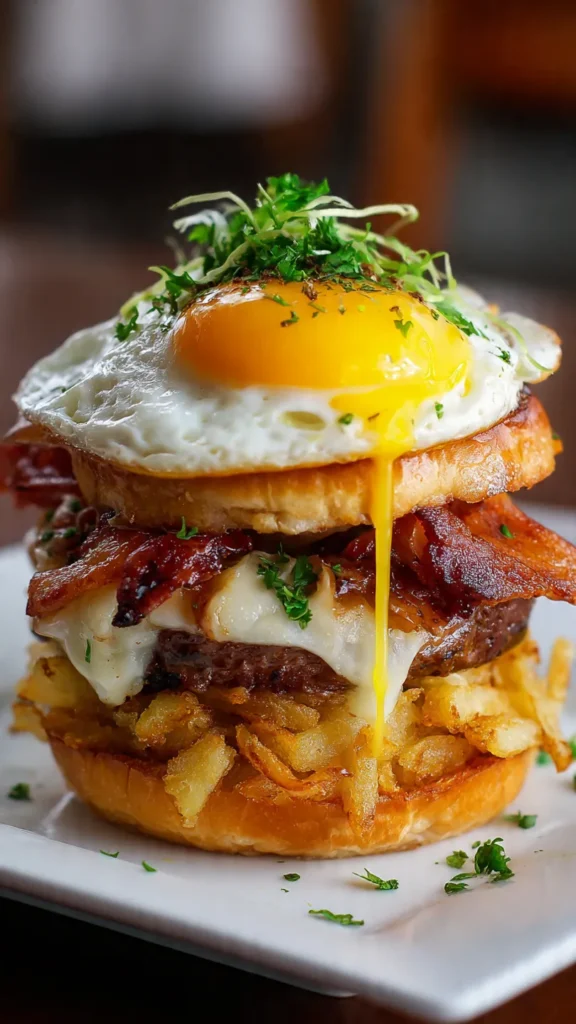 This Ultimate Breakfast Burger transforms ordinary morning ingredients into something extraordinary. It’s messy, indulgent, and utterly satisfying—exactly what weekend breakfast should be. The combination of textures and flavors creates a eating experience that’s greater than the sum of its parts.