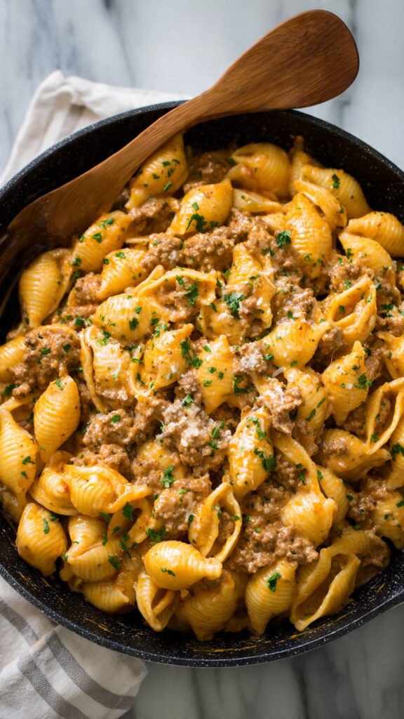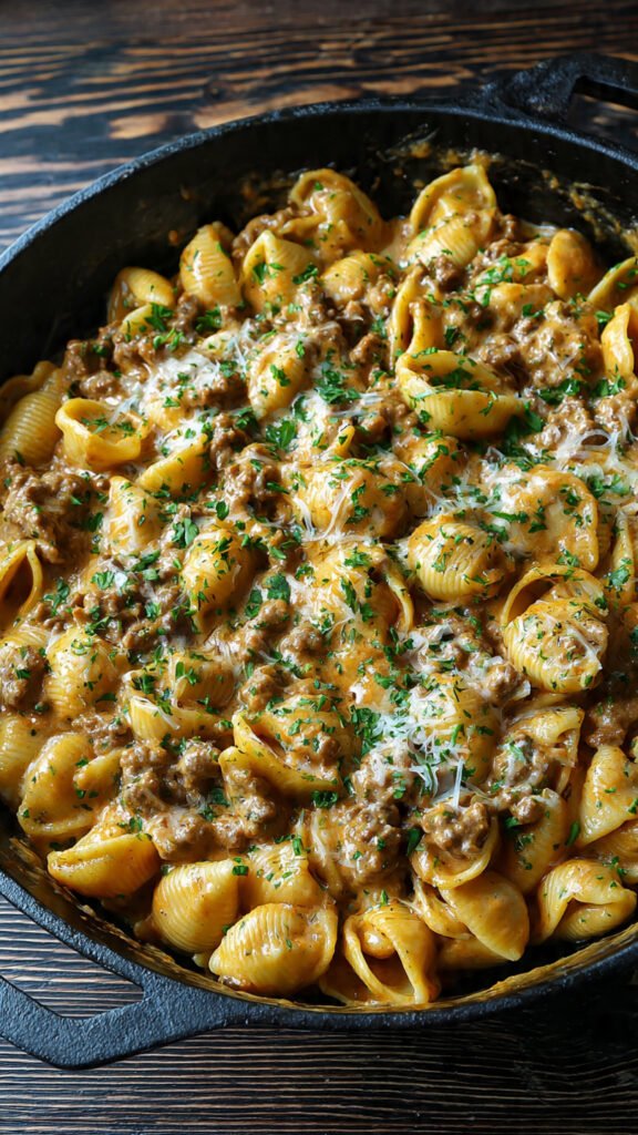 Creamy Beef and Shells proves that impressive, delicious meals don’t require complicated techniques or expensive ingredients. This recipe succeeds because it focuses on building flavors through proper technique—browning the meat well, sautéing aromatics, and allowing the sauce to reduce and concentrate. The result is a dish that tastes like you spent hours cooking when you actually spent less than 30 minutes.