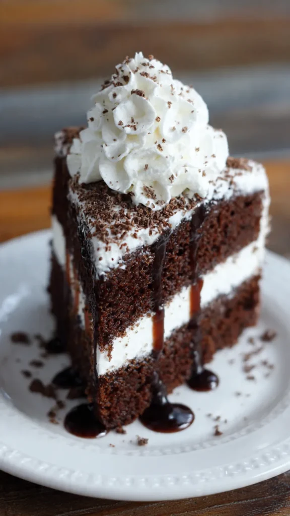 • Whipped Cream:ย Light and airy, balances the dense fudgy cake