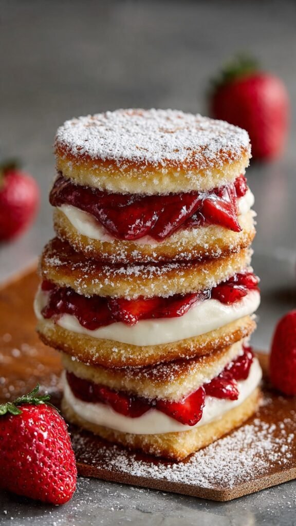 The moment you bite through the crispy, golden exterior of these sandwiches and hit that luscious cream cheese filling studded with juicy strawberries, you’ll understand why this recipe has taken over breakfast tables and dessert menus everywhere. It’s like someone took everything we love about cheesecake, stuffed it between slices of buttery brioche, and transformed it into the most indulgent handheld treat imaginable.