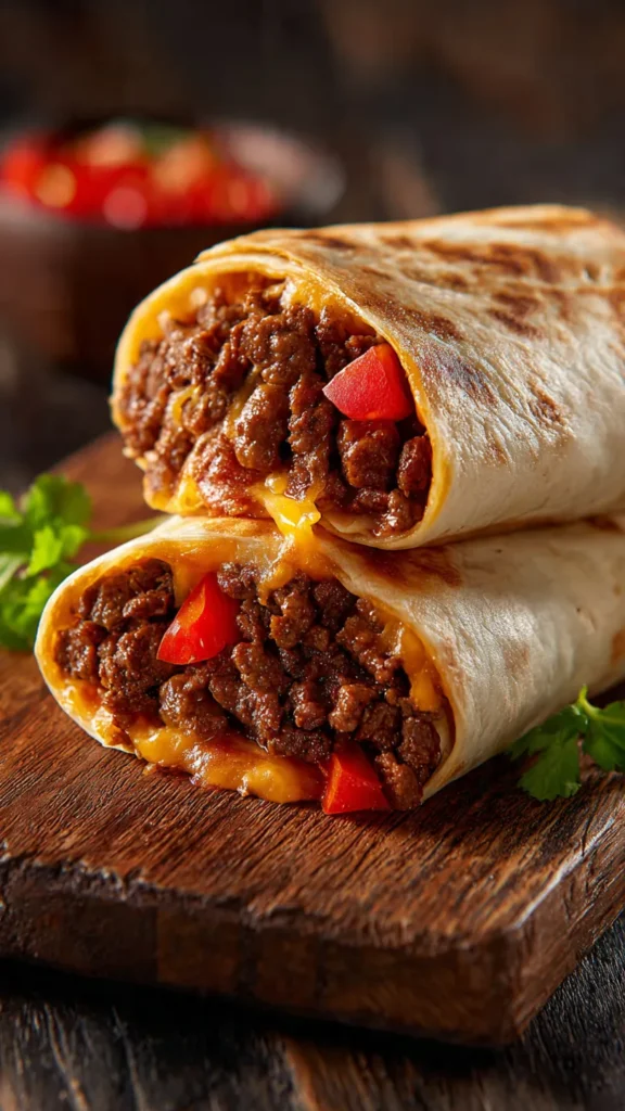Let the beef mixture rest for 5 minutes before assembling, don’t overfill the tortillas, and toast the wraps immediately after assembling. Adding crushed chips just before wrapping also helps maintain crunch.โ€‹