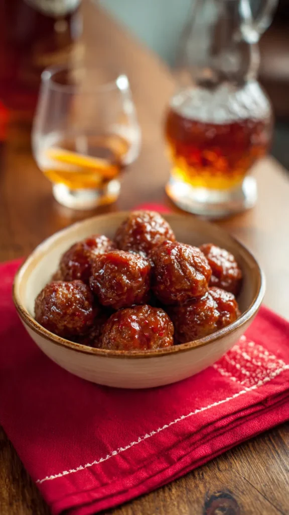 Bourbonโs roots in American whiskey-making, particularly in Kentucky, give these meatballs a distinctly Southern flair, especially when paired with stone fruits like peaches. Peach-and-bourbon combinations appear in classic desserts, barbecue sauces, and glazes, and translating that pairing into an appetizer brings those flavors into the spotlight at the holiday table. Over time, dishes like this have become a way to bridge casual comfort food with a touch of craft cocktail sophistication.
