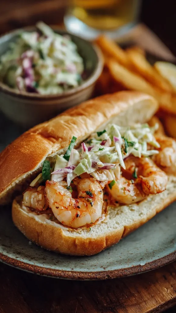There’s something irresistibly satisfying about biting into a shrimp sandwich where crispy, golden-fried shrimp meets cool, crunchy coleslaw with just the right amount of spicy kick. I’ll never forget my first shrimp po’ boy at a tiny seafood shack on the Louisiana coastโ€”the contrast of hot, crunchy shrimp against cold, tangy slaw, all nestled in a butter-toasted bun that somehow held together despite being loaded to capacity. That perfect bite changed my understanding of what a sandwich could be.