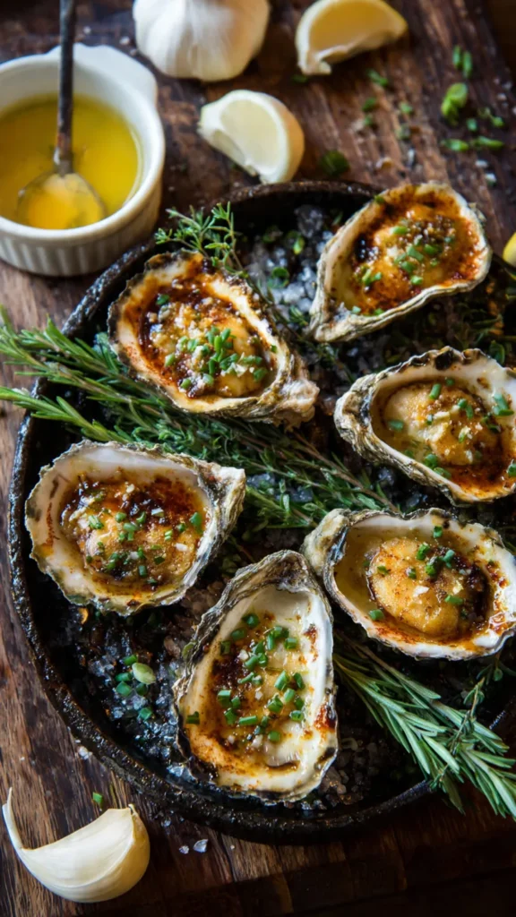 The combination of melted butter with fresh minced garlic creates a rich, aromatic sauce that complements the oysters’ brininess. Fresh garlic is essentialโpre-minced jarred garlic won’t provide the same robust flavor.