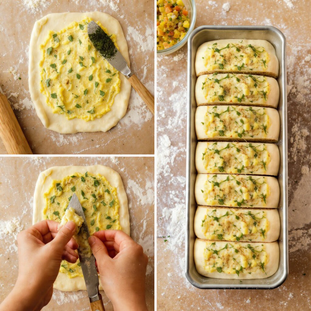Add tangzhong, egg, cream cheese, butter, flour, and salt. Knead until smooth and elastic (about 8–10 minutes). The dough should feel soft but not sticky.