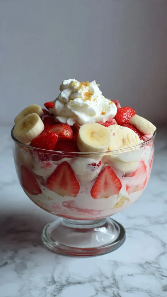 Transfer the salad to your serving bowl. If desired, top with crushed graham crackers for a “crust” element, extra mini marshmallows for sweetness and texture, or a dollop of fresh whipped cream. Garnish with reserved fruit slices. Serve immediately or keep chilled until ready to serve. This salad is best enjoyed the same day while fruit is fresh and bananas haven’t discolored.