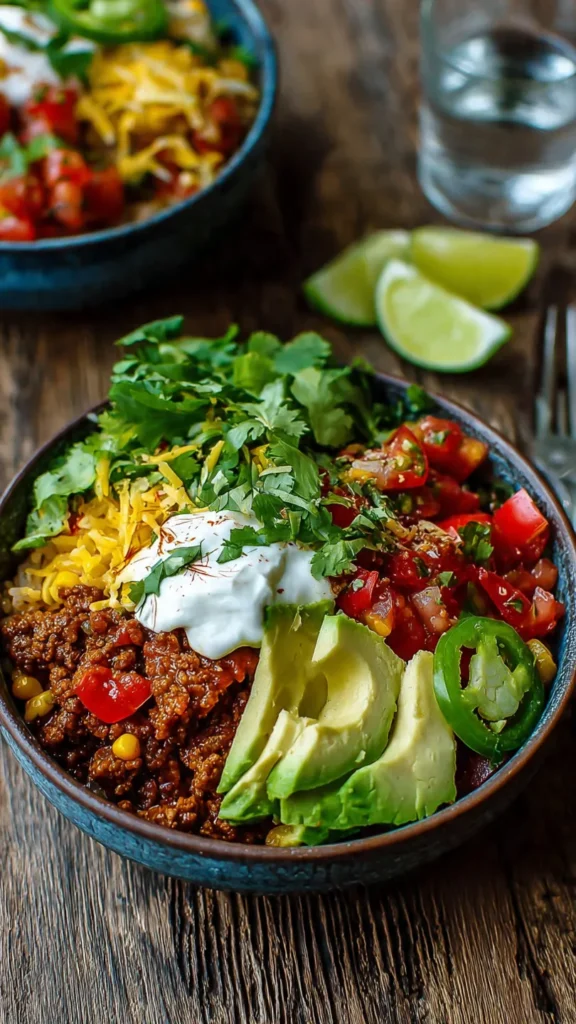 Taco bowls have become a modern favorite for good reason. They’re incredibly practical—everything stays in one bowl, making them perfect for meal prep containers or easy weeknight dinners. The layered presentation looks impressive without requiring any special plating skills, and each component can be prepared ahead and stored separately for quick assembly throughout the week.